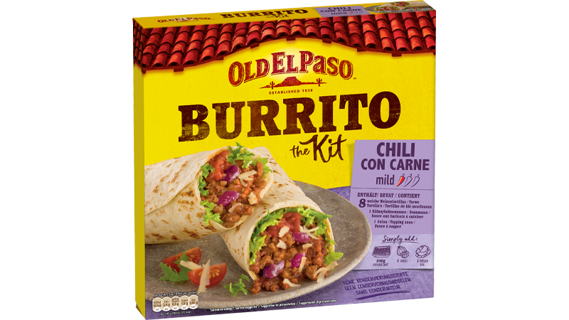 Retrouvez votre recette de Burrito Chili con Carne et réchauffez vos soirées en famille ou entre amis. Au menu: bœuf légèrement épicé, tomates fraîches, laitue croquante, fromage fondant et sauce savoureuse: le tout roulé dans une tortilla mœlleuse bien chaude. Réunissez vos proches et laissez vos papilles faire le reste. Burritos Old El Paso™: toujours plus de goût à partager!
