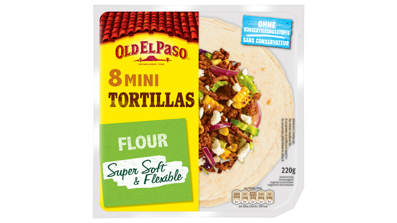 - 8 tortillas Old El Paso™ Mini Super Soft Flour, chauffées